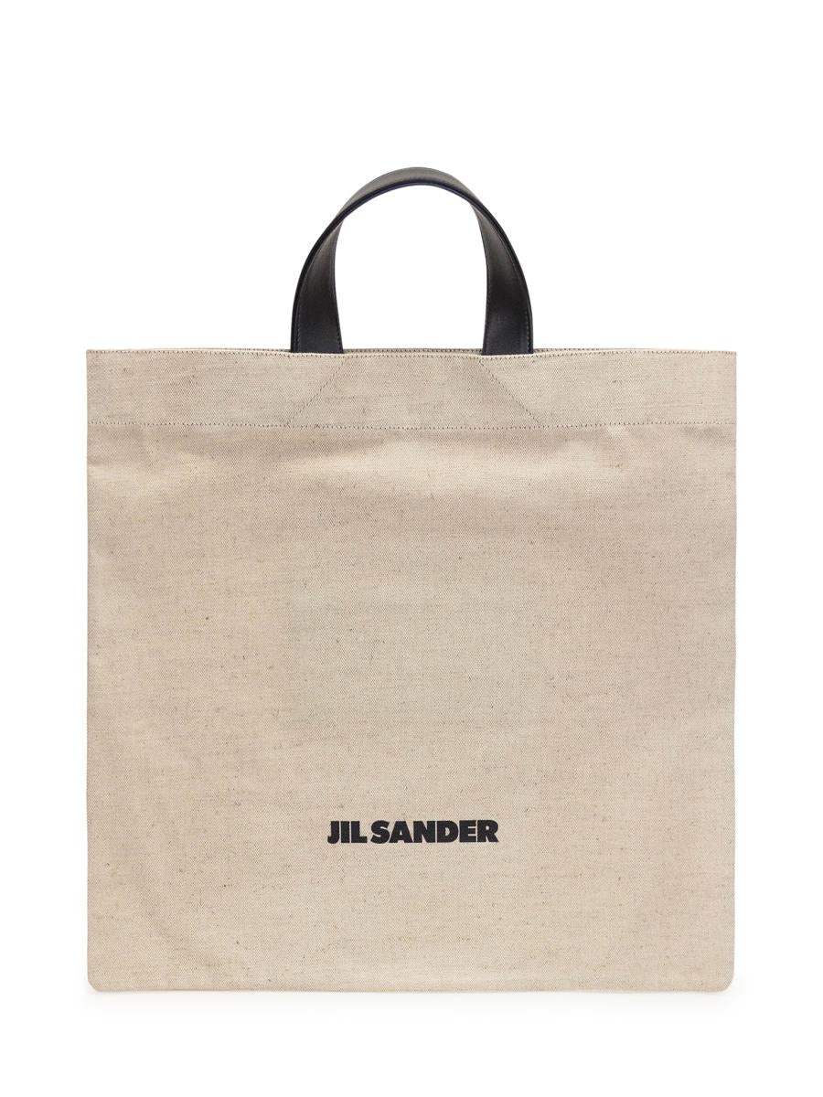 Beige canvas bag. Two handles. Logo on front. Width: 49 Height: 47 Depth: 1 Gender: Women Material: OUTSIDE: 70% COTTON, 30% LINEN FINISHING: 100% LEATHER Color: BEIGE Made in: IT Product ID: J07WC0024P4917 280 *Import tax/duty will be calculated at checkout (If applicable)