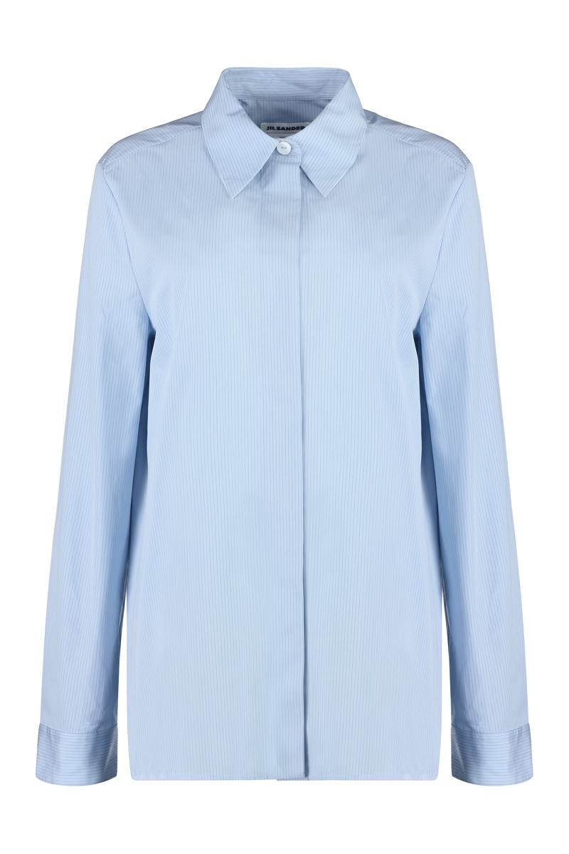 Striped cotton shirt Front hidden fastening 100% Cotton Gender: Women Material: COTTON Color: BLUE Made in: IT Product ID: J05DL0101J45174_494 *Import tax/duty will be calculated at checkout (If applicable)