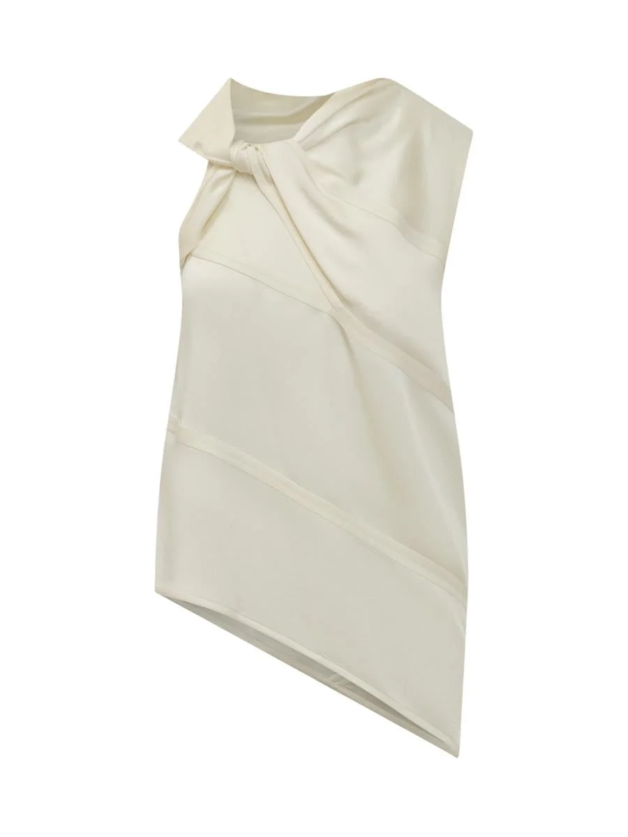Asymmetric knotted satin top