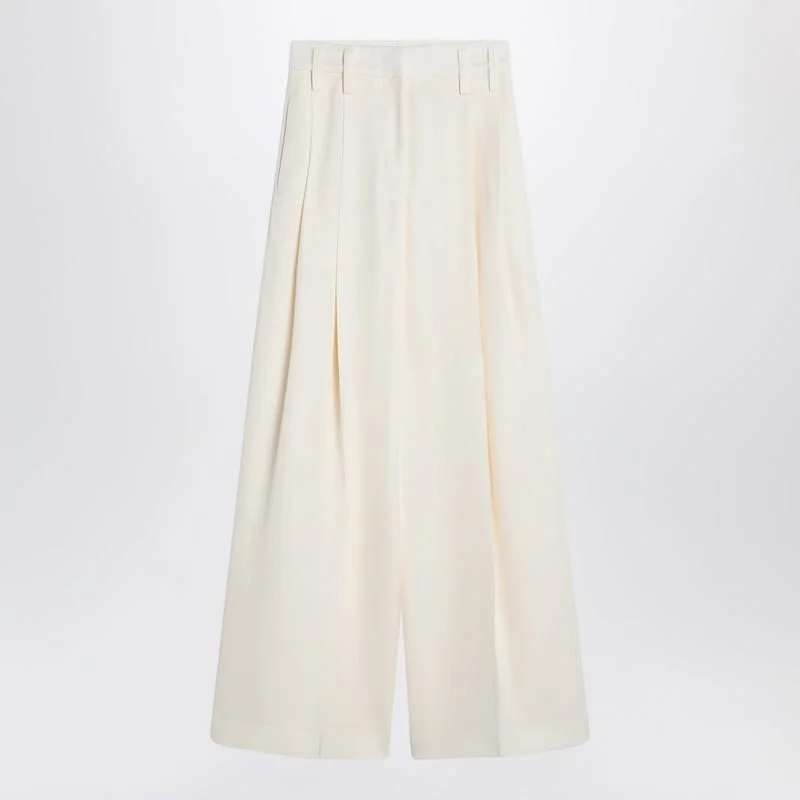 Wide Jil Sander pants in a viscose and silk blend in cream colour, characterized by a high waist with belt loops, front closure with zip and hook, two side welt pockets, two back welt pockets, and pleats at the front. Gender: Women Material: Fabric I: 58% Viscose - 42% Silk / Pocket lining: 100% Cotton / Color: WHITE Made in: Italy Product ID: J03KA0292J65005/Q_JILSA-105 *Import tax/duty will be calculated at checkout (If applicable)