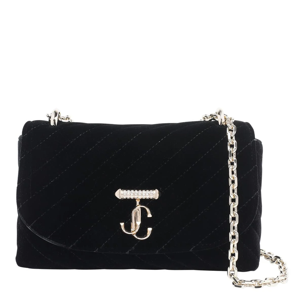 Curve Cross Body Small Black Quilted Velvet Crossbody Bag with Crystal JC Bar