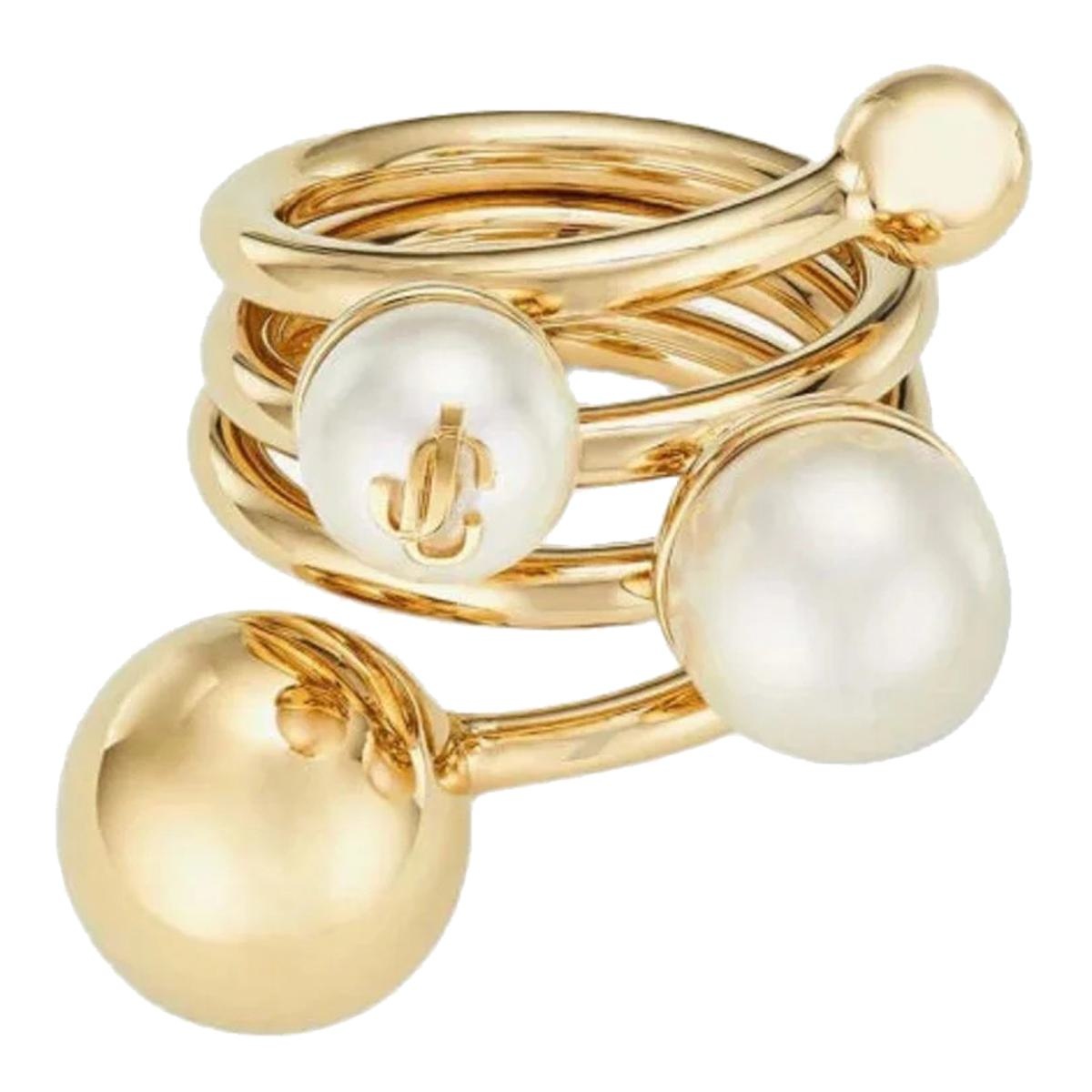 Jimmy Choo Gold Jc Multi Pearl Ring, Pearl With Logo Details, US SIZE Gender: Women Material: 100% METAL Color: Gold Made in: IT Product ID: JC MULTI PEARL RINGDXQGOLD/WHITE *Import tax/duty will be calculated at checkout (If applicable)