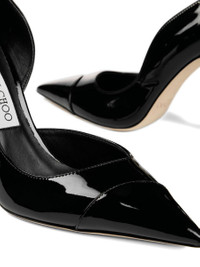 black patent leather 100mm heel pointed toe cut-out detail leather sole Heel 10 cm Gender: Women Material: 88% LEATHER 5% SALPA 3% METAL 4% PLASTIC Color: Black Made in: Italy Product ID: BRIGITTE100PATBLACK *Import tax/duty will be calculated at checkout (If applicable)