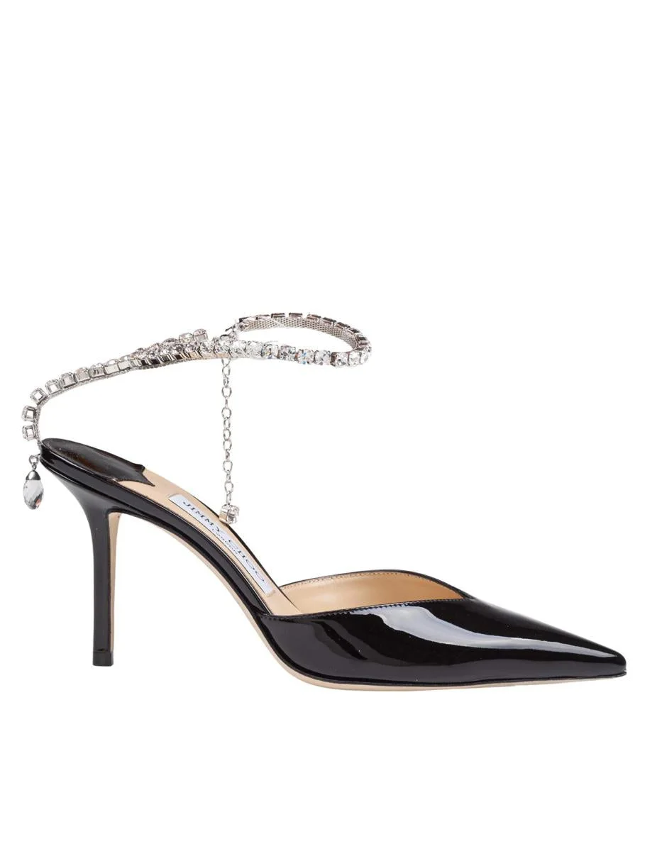 Saeda 85 Black Patent Leather Pumps with Crystal Embellishment
