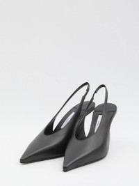 Black calf leather slingback pumps. Featuring a pointed toe, slingback strap, and signature Drop heel. Dust bag included. Any leather imperfections are not to be considered manufacturing defects, but rather a unique characteristic of the material. Heel height: 8 cm ITA size. Size nationality: IT Gender: Women Material: UPPER: 100% CALFSKIN; SOLE: CUIR & LEATHER Color: Black Made in: Italy Product ID: 2013983 ISA80 CLF BLACK *Import tax/duty will be calculated at checkout (If applicable)