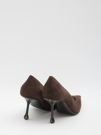Chocolate brown suede pumps. Feature pointed design, squared cut, and Drop heel with decorative detailing. Dustbag included. Heel height: 8 cm Size: ITA. Size nationality: IT Gender: Women Material: UPPER: 100% SUEDE; SOLE: 50% CALF LEATHER, 50% RUBBER Color: BROWN Made in: Italy Product ID: 1095001 IXIA80 JRS CHOCOLATE *Import tax/duty will be calculated at checkout (If applicable)