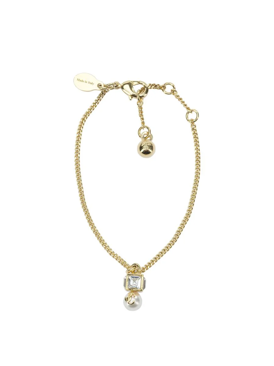 Jc Pearl Cube Brclt Gold Metal Bracelet with Pearl and Crystal Cube