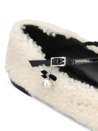 Eleri Ballerina S Natural Shearling Ballerina Pumps with Pearl Charm