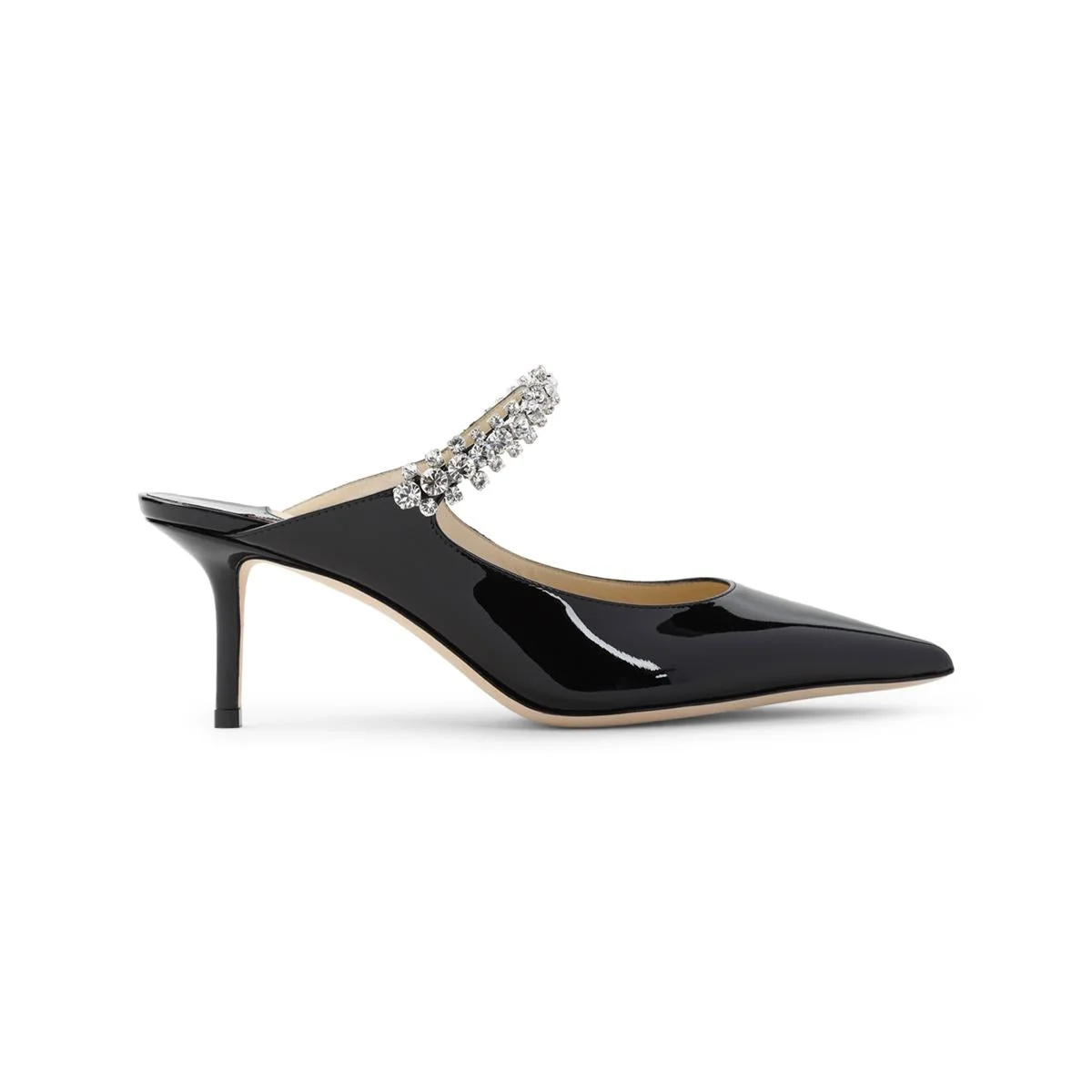 Bing 65 Black Patent Leather Mules with Crystal Strap