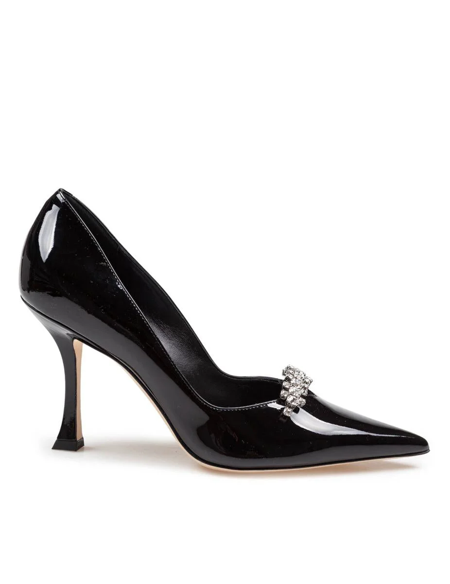 Patent leather pumps Black Pointed toe Crystal embellishment Leather lining Leather and rubber sole Heel height: 9.5 cm Gender: Women Material: 100% LEATHER Color: Black Made in: Italy Product ID: BELINDA PUMP 90 PAT *Import tax/duty will be calculated at checkout (If applicable)