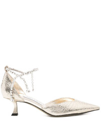 Stevie 50 crystal-embellished metallic textured-leather pumps
