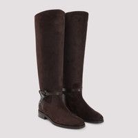 Lawton Knee Boot Flat Chocolate Suede and Calf Leather Knee High Boots