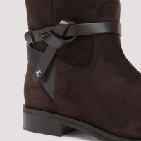 Jimmy Choo Chocolate Brown Suede Calf Leather Lawton Kb Flat Boots. Pure chocolate brown suede calf leather boots, round toe, knee-high, tonal ankle leather adjustable strap, side silver-tone signature JC logo, tonal sole. Gender: Women Material: 100%SUEDE CALF LEATHER Color: BROWN Made in: Italy Product ID: LAWTONKBFLAT.ALR_ *Import tax/duty will be calculated at checkout (If applicable)