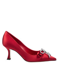 Auria 70 Ruby Red Satin Pumps with Satin and Crystal Bow