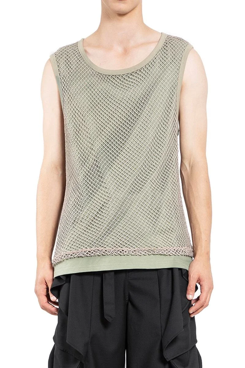 SUN-BLEACHED MESH LAYERED SLEEVELESS Gender: Men Material: 100% COTTON Color: GREEN Made in: KR Product ID: JK25SSTO12 GREEN *Import tax/duty will be calculated at checkout (If applicable)