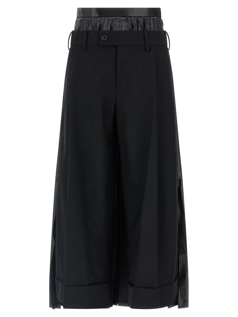Double layer trousers consisting of wool front and pleated fabric back, front zip and button closure, wide leg, pockets, side slits on the leg bottom Gender: Women Material: 50% WOOL, 50% POLYESTER Color: Black Made in: Imported Product ID: JPP0491 *Import tax/duty will be calculated at checkout (If applicable)