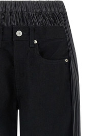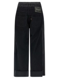 Junya Watanabe x Levi's® cotton denim jeans with pleated fabric inserts, zip closure and front trompe l'oeil button, elastic waistband, five pockets, wide leg, back logo tag Gender: Women Material: 100% COTTON Color: Black Made in: Imported Product ID: JPP2061 *Import tax/duty will be calculated at checkout (If applicable)