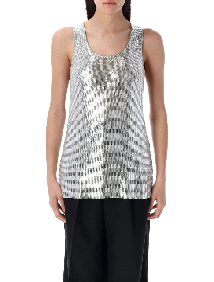 Metallic mesh tank top by Junya Watanabe. Featuring: Soop neck Sleeveless Straight hem Model is 1,70 m and wears size M Gender: Women Material: 100% ALUMINIUM Color: SILVER Made in: JP Product ID: 25PJOT011051#1 *Import tax/duty will be calculated at checkout (If applicable)