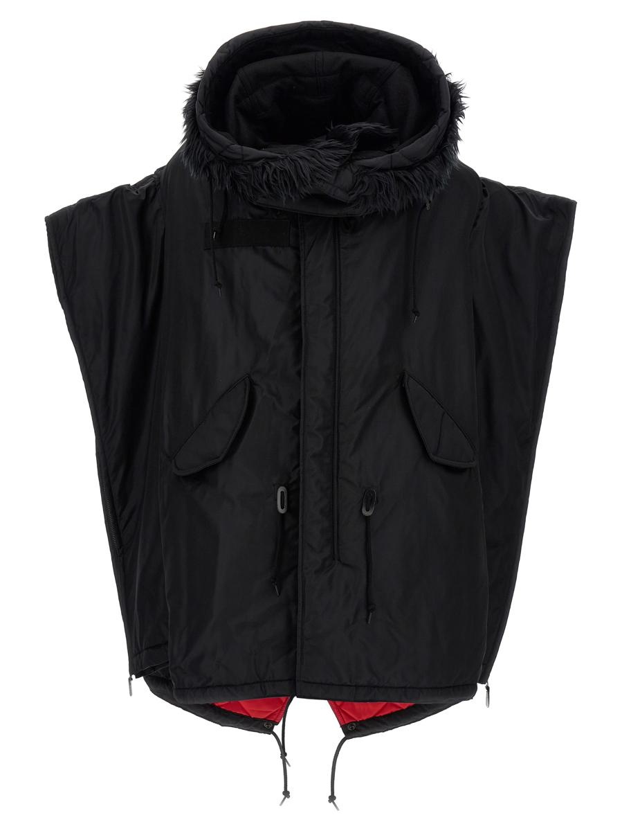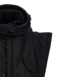 Oversize nylon down jacket with removable hood with faux fur insert, zip and button closure, pockets, long sleeves with opening zip, adjustable drawstring at the hem Gender: Women Material: 100% NYLON Color: Black Made in: JP Product ID: JNC0151 *Import tax/duty will be calculated at checkout (If applicable)