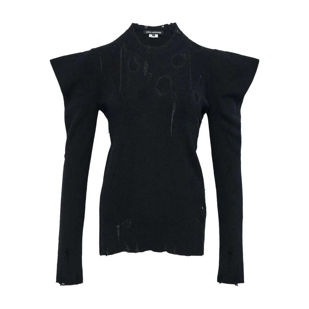 Black wool distressed detailing ribbed knit long sleeves Gender: Women Material: WOOL: 100.0% Color: Black Made in: Imported Product ID: JP-N007 BLACK *Import tax/duty will be calculated at checkout (If applicable)