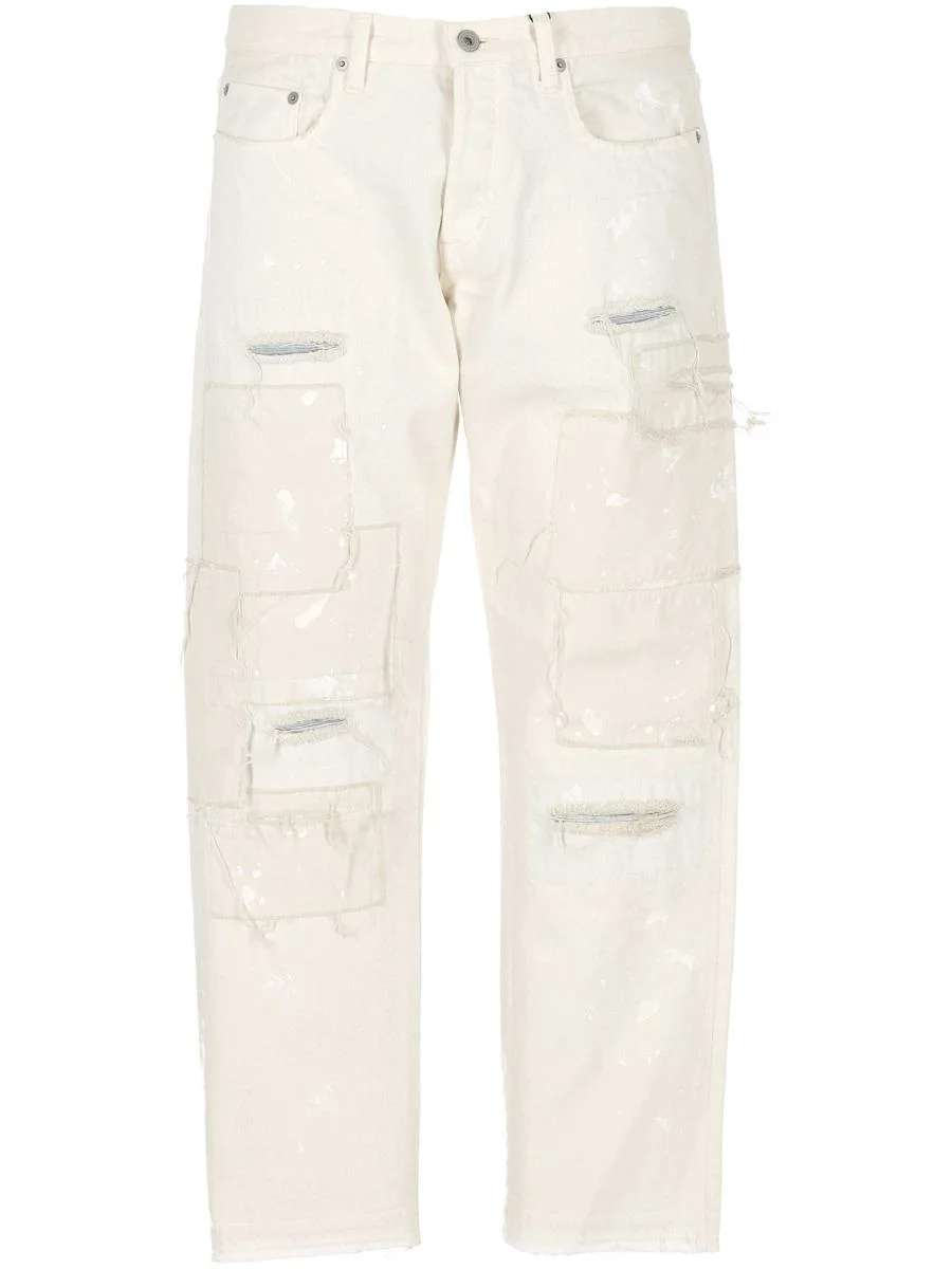 off-white paint splatter frayed details patchwork panels Gender: Men Color: WHITE X MIX Made in: Imported Product ID: WOP0241 *Import tax/duty will be calculated at checkout (If applicable)