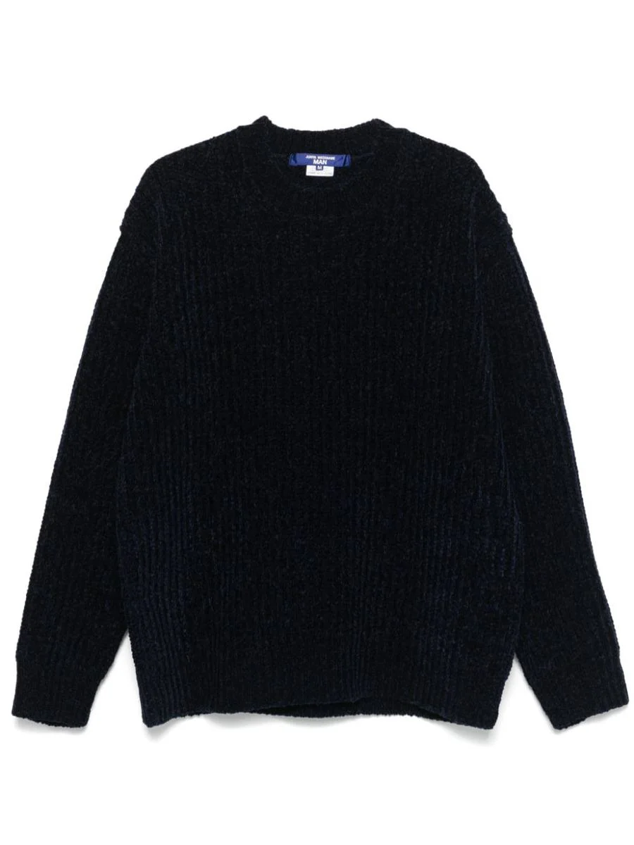 navy blue ribbed knit crew neck long sleeves straight hem This piece fits true to size. We recommend you get your regular size Model is 1,84m / 6ft 1in wearing size 2 (NUM) Gender: Men Material: POLYESTER 85% WOOL 15% Color: BLUE Made in: JP Product ID: WNN0100511 *Import tax/duty will be calculated at checkout (If applicable)