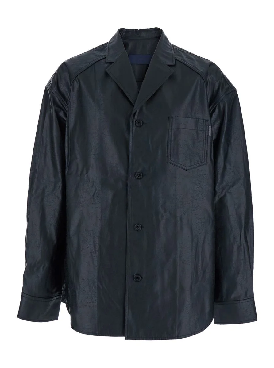 Juun.J Dark Blue Shirt With Classic Collar And Chest Pocket In Cotton Man