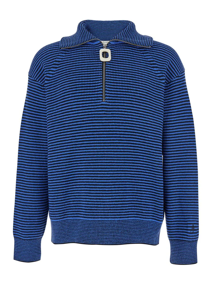 JW Anderson Blue Sweater With Half Zip Closure On The Front In Cotton Piquet Man