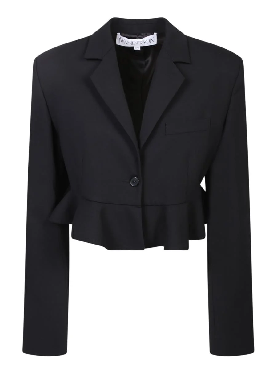 Wool blend blazer by JW Anderson Cropped design. Long sleeves. Gender: WOMEN Material: 93% VIRGIN WOOL 7% ELASTANE 100% VISCOSE Color: BLACK Made in: IMPORTED Product ID: JK0264 PG1321 999 *Import tax/duty will be calculated at checkout (If applicable)