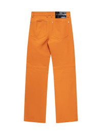 Orange leather long pants. Button and zipper closure. Belt loops. Four pockets. Logo patch on back. Gender: Women Material: OUTSIDE: 100% LEATHER LINING: 100% VISCOSE Color: ORANGE Made in: GB Product ID: LO0008LT0077 429 *Import tax/duty will be calculated at checkout (If applicable)