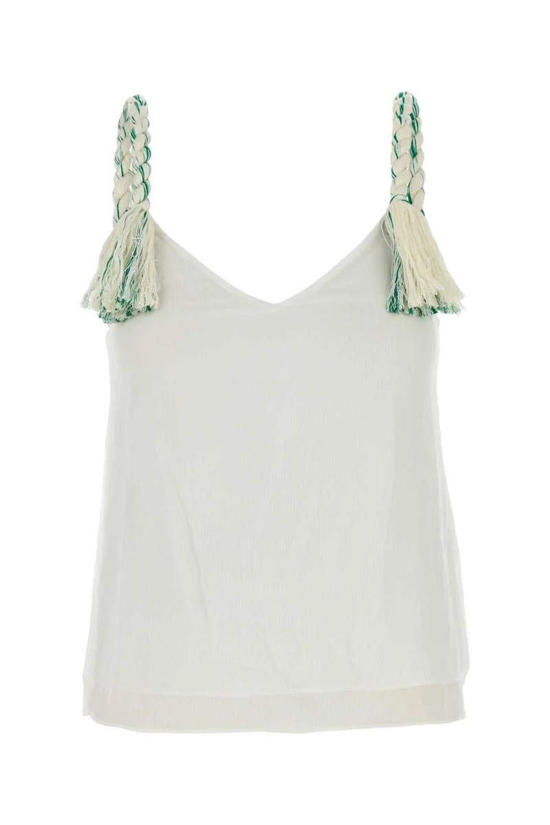 White tulle top Gender: Women Material: EXTERIOR: 100% VISCOSE LINING: 100% POLYESTER Color: WHITE Made in: IMPORTED Product ID: TP0339PG1647 002 *Import tax/duty will be calculated at checkout (If applicable)