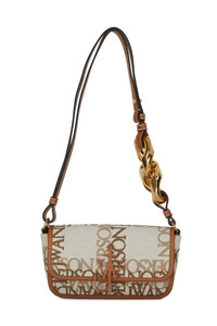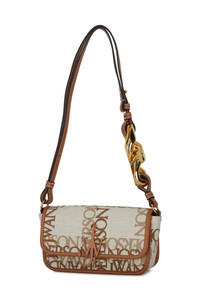 Beige bag. Adjustable shoulder strap with chain detail. Flap and button closure. All-over logo. Metal logo on front. Width: 18.5Height: 9.5Depth: 6 Gender: WOMEN Material: OUTSIDE: 75% COTTON, 20% CALFSKIN, 5% POLYESTER Color: BEIGE Made in: ES Product ID: HB0431FA0136 104 *Import tax/duty will be calculated at checkout (If applicable)