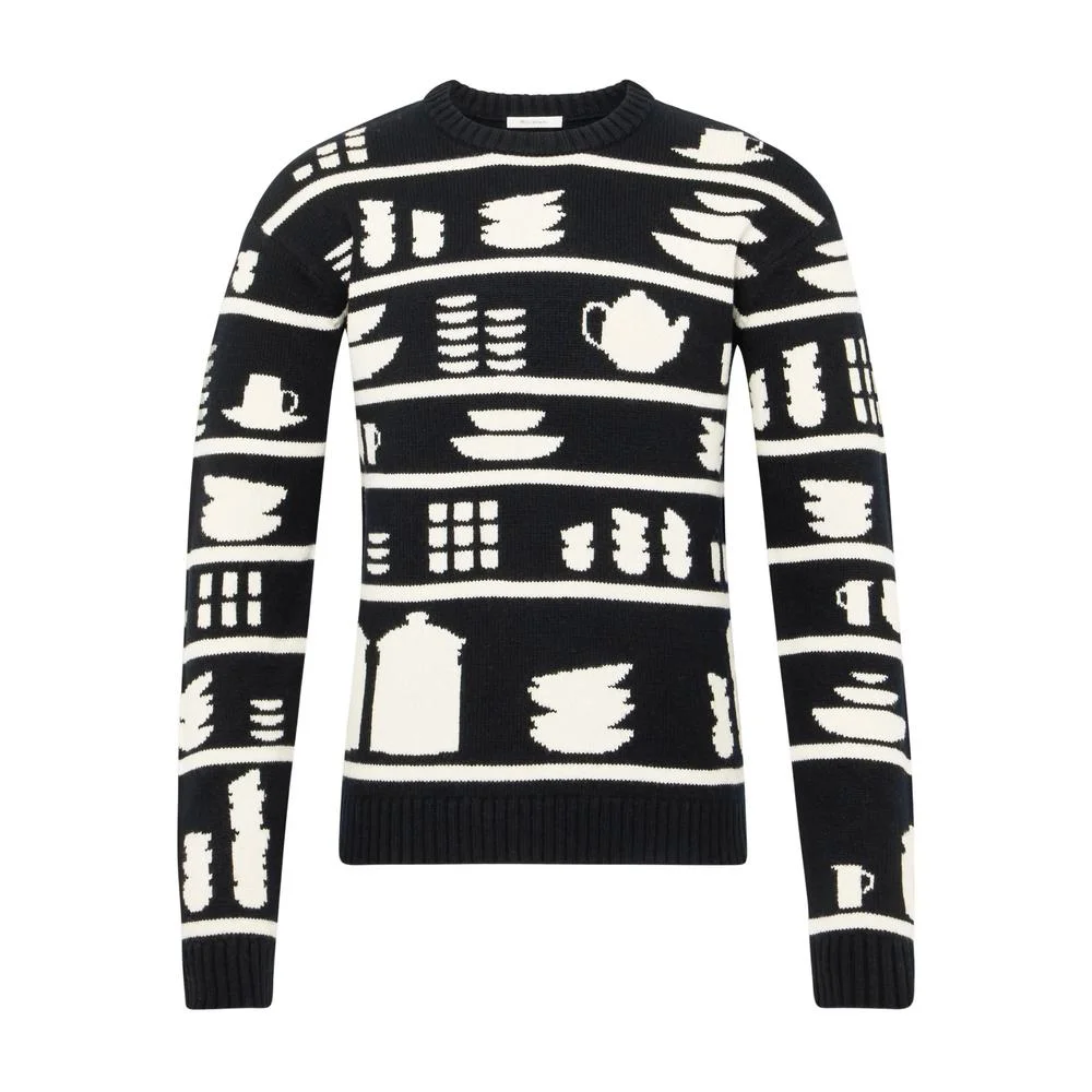 Black tableware pattern crew neck long sleeves knitted Gender: Women Material: COTTON: 100.0% Color: Multicolor Made in: Imported Product ID: KW1490 YN0379 901 *Import tax/duty will be calculated at checkout (If applicable)