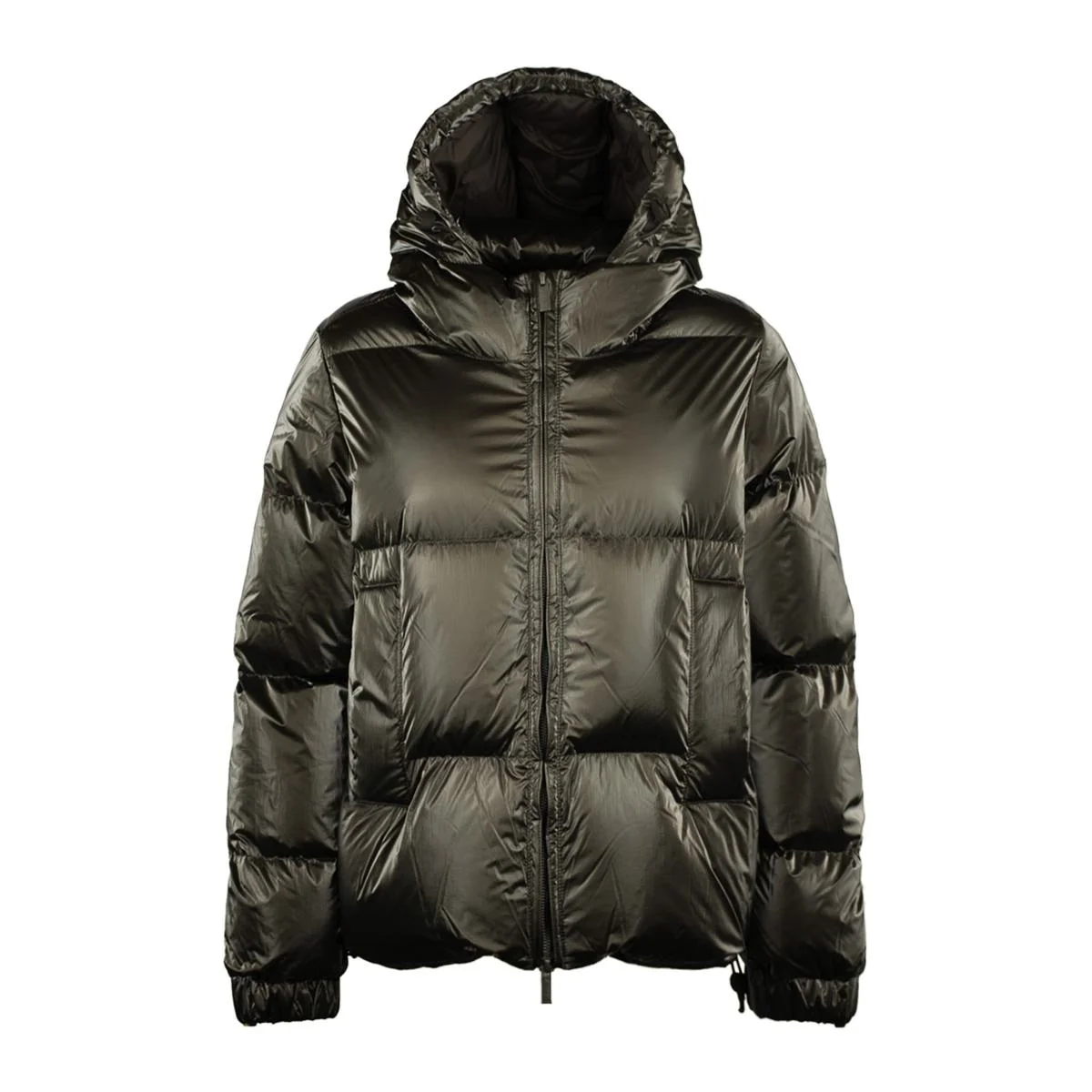Color Item: Black olive combo | Lethille is a women's short, padded jacket with a sports-glam look and a bright, pearl-effect quilted fabric | Designed to cope with the harshest weather thanks to Molina down filling, provides excellent protection from the cold and low weight | Down jacket features a wrap-around hood and full-zip closure | Feather-tight quilted fabric | Real Molina down filling | High degree of warmth | Wrap-around hood | Elasticized cuffs | Zip closure and cover profiles2 pockets with snap buttons | Adjustable hem with drawstring | Regular fit | K-Way tape insert in sleeve bottom | Outer: 100% Polyamide | Lining: 100% Polyester | Padding: 90% Duck Down, 10% Duck Down Gender: Women Material: SYNTHETIC MATERIALS Color: BLACK, GREEN Made in: Italy Product ID: K7136MW *Import tax/duty will be calculated at checkout (If applicable)