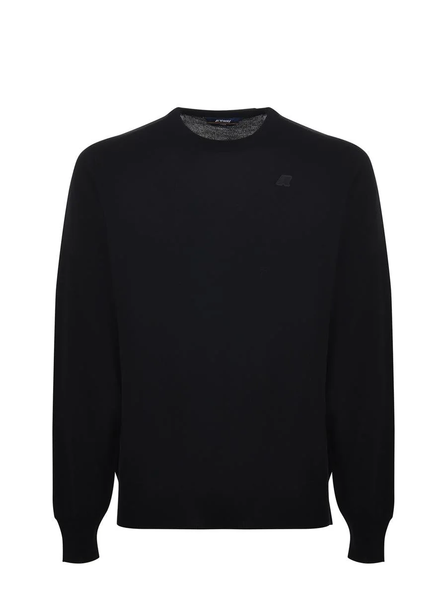 K-Way wool sweater. Crew neck. Long sleeves. Ribbed cuffs and hem. Matching rubberized logo on the chest. Regular fit. Size (pictured) M Gender: Men Material: 100% WOOL Color: Black Made in: Imported Product ID: K2142EWUSY *Import tax/duty will be calculated at checkout (If applicable)