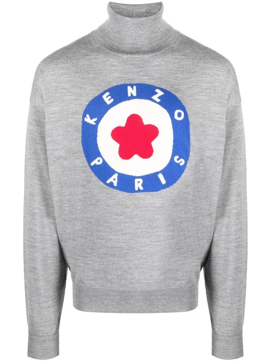 roll-neck fine-knit jumper from KENZO featuring heather grey, wool, intarsia-knit logo, mélange effect, roll neck, drop shoulder, long sleeves and ribbed cuffs and hem. Gender: Men Material: WOOL 100% Color: GRIS PERLE Made in: Imported Product ID: FD65PU4013BA 94 *Import tax/duty will be calculated at checkout (If applicable)