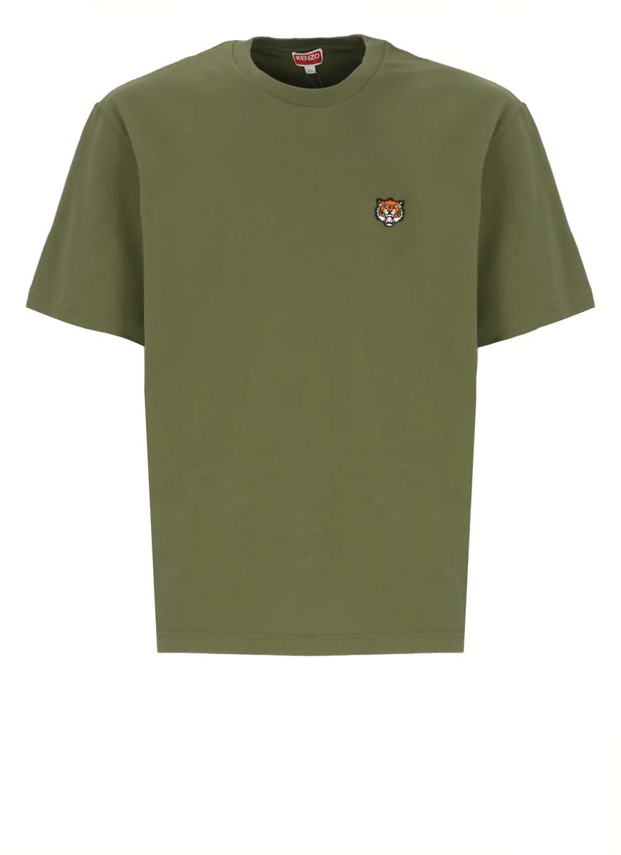 - Green Kenzo cotton t-shirt for man - Crew neck - Short sleeves - Front and rear contrasting color Happy Tiger emboidered logo Model's height is 190 cm and he wears a size L Gender: Men Material: 100% COTTON Color: GREEN Made in: Portugal Product ID: FF55TS5274SG50 *Import tax/duty will be calculated at checkout (If applicable)
