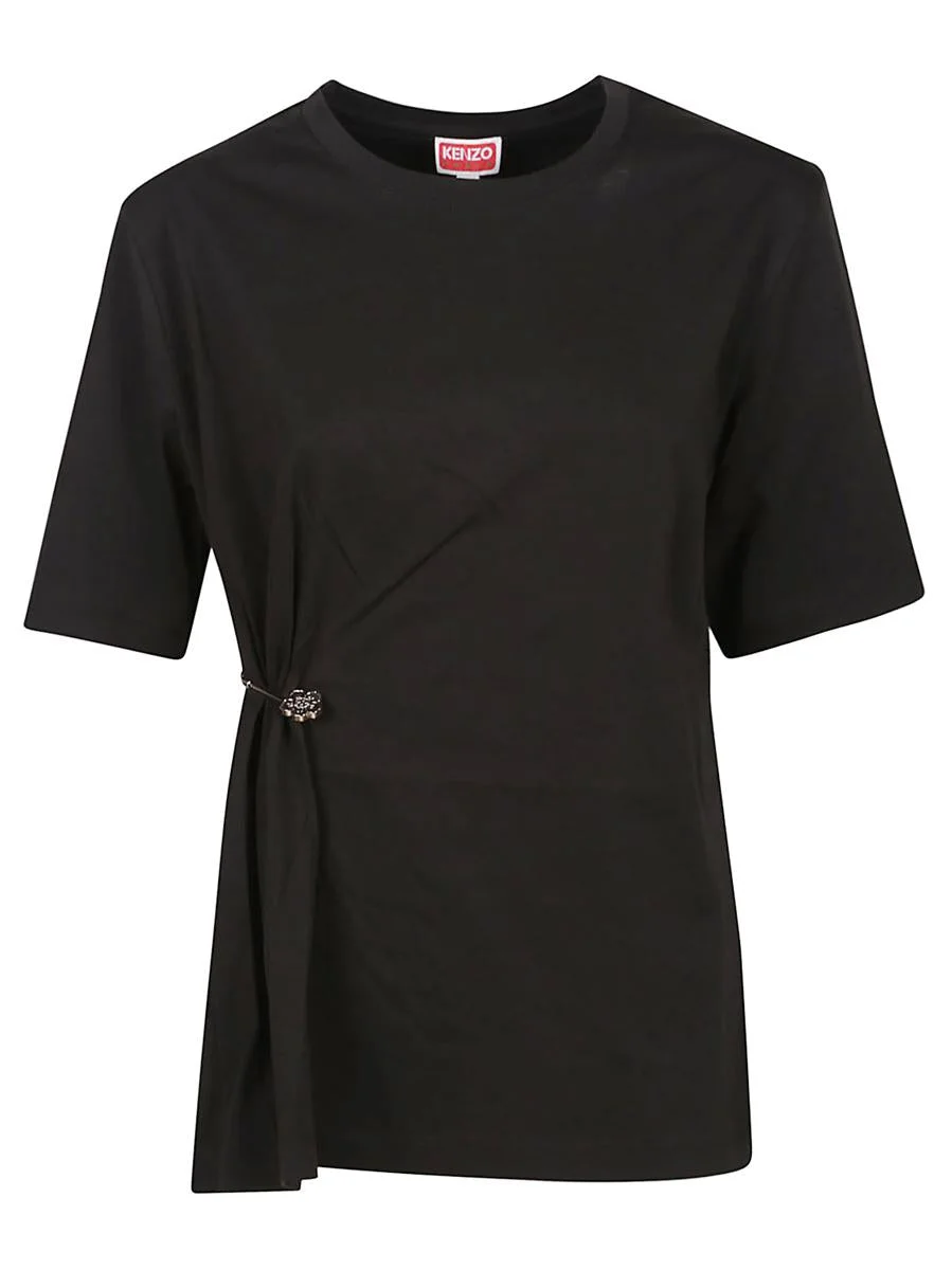 'Boke Flower' pin drap detail T-shirt in cotton