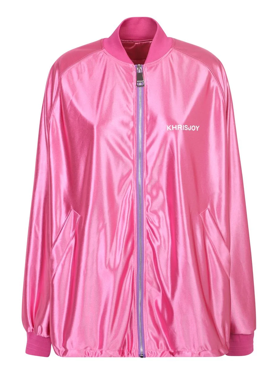 Logo-print metallic bomber jacket Long sleeves Front zip fastening Logo print at the chest Metallic effect Straight hem Color: pink Loose fit 100% Polyester Made in Italy Gender: Women Color: PINK Made in: IT Product ID: DSW001 TR PE8 *Import tax/duty will be calculated at checkout (If applicable)