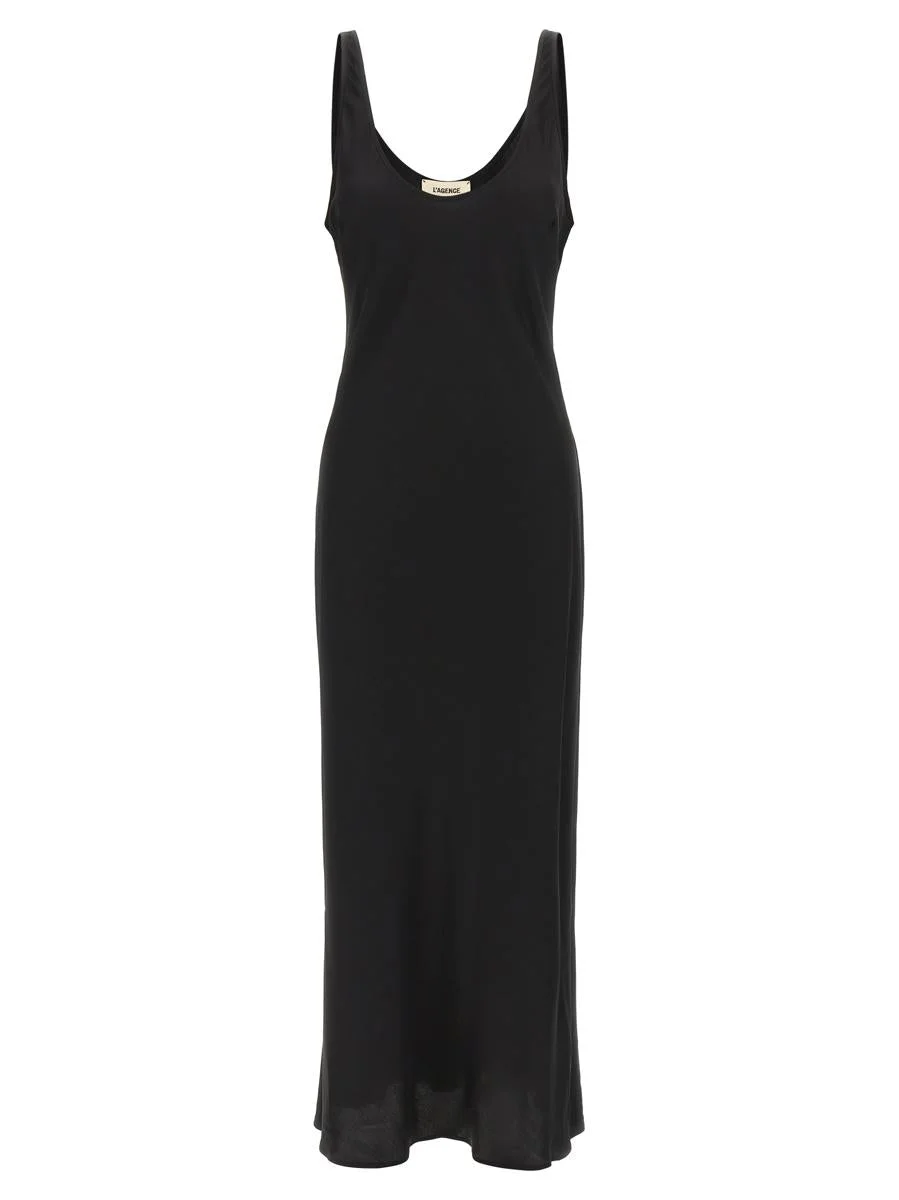 Long 'Akiya' satin dress with slightly flared silhouette, sleeveless, wide round neckline front and back Gender: Women Material: 55% RAYON, 45% VISCOSE Color: Black Made in: Imported Product ID: 61120PLYBLAC *Import tax/duty will be calculated at checkout (If applicable)