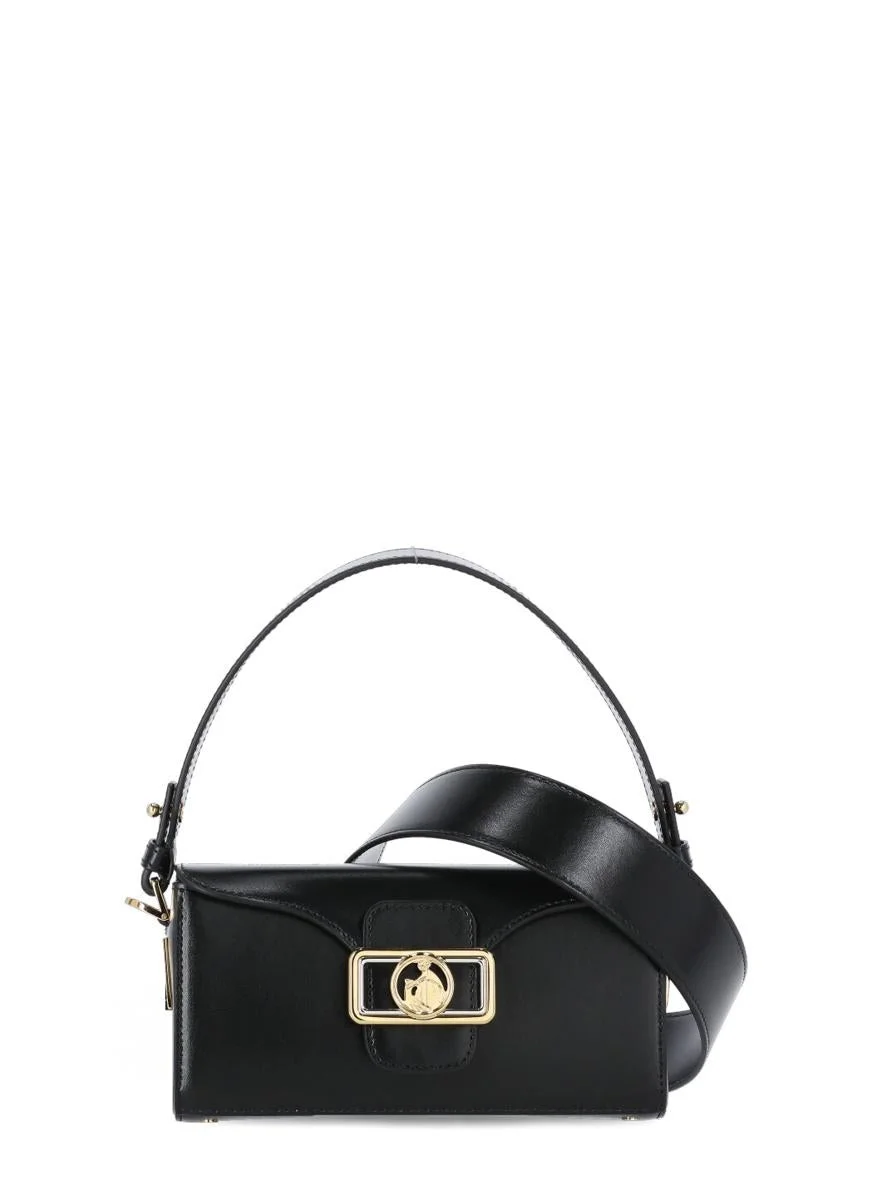 - Black Lanvin smooth leather shoulder bag for woman - One removable handle - One adjustable and removable shoulder strap - One main compartment with one internal welt pocket - Front Mother and Son metal logo - Logo engraved on the sides - Front magnetic flap fastening HEIGHT= 9 cm LENGTH= 19 cm DEPTH= 6 cm HANDLE DROP= 12 cm SHOULDER STRAP DROP= 50 cm Gender: WOMEN Material: 100% CALF LEATHER DETAIL: 100% BRASS DETAIL 2: 100% ZAMAC LINING: 100% LAMB LETATHER Color: Black Made in: IT Product ID: LWBGBR06PALMA2210 *Import tax/duty will be calculated at checkout (If applicable)