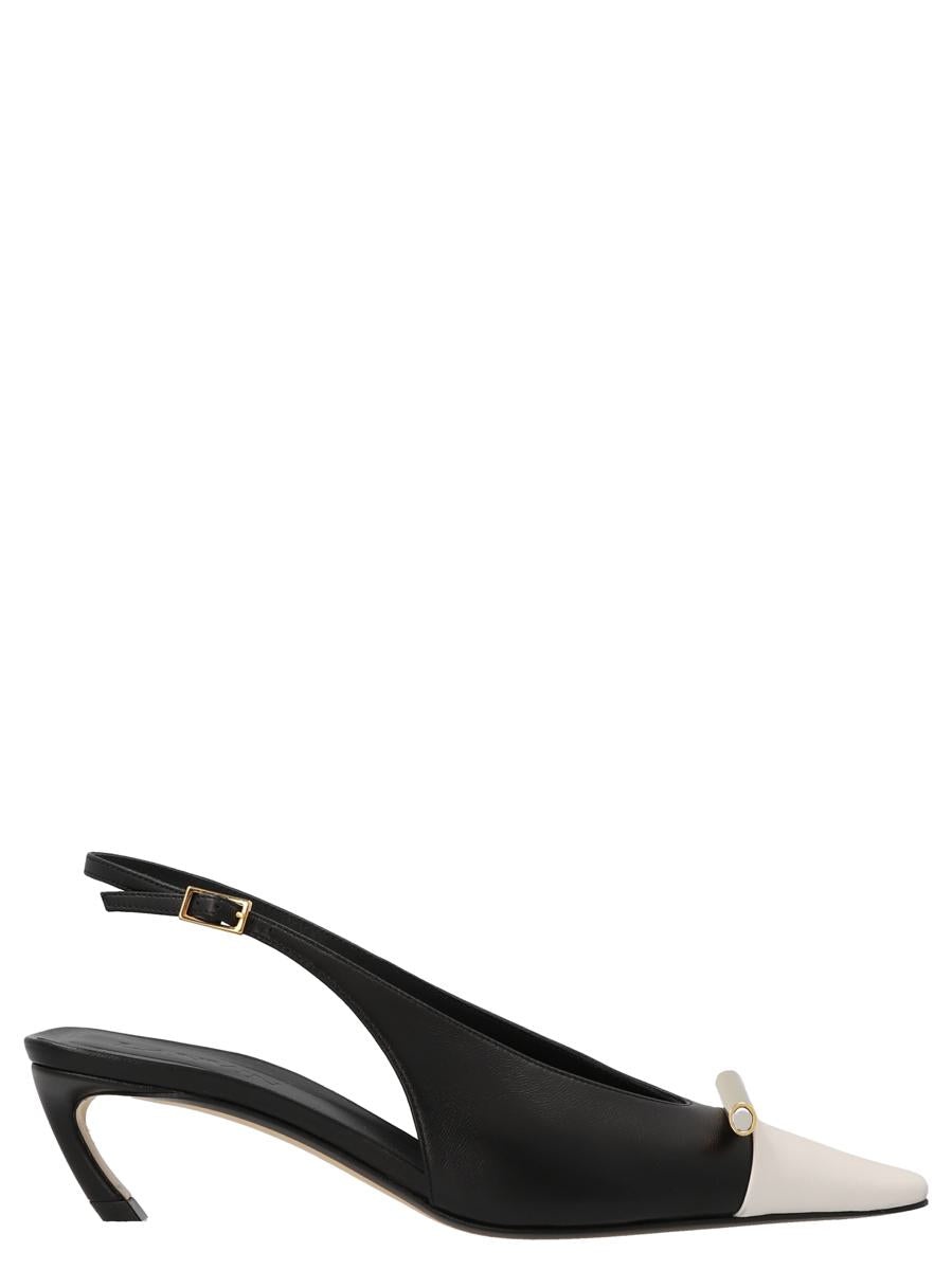Bico' two-color leather slingbacks with front metal detail application and a low heel Gender: Women Material: 100% GOAT LEATHER Color: WHITE/BLACK Made in: Imported Product ID: FWPUSP08NAPAP23B104 *Import tax/duty will be calculated at checkout (If applicable)