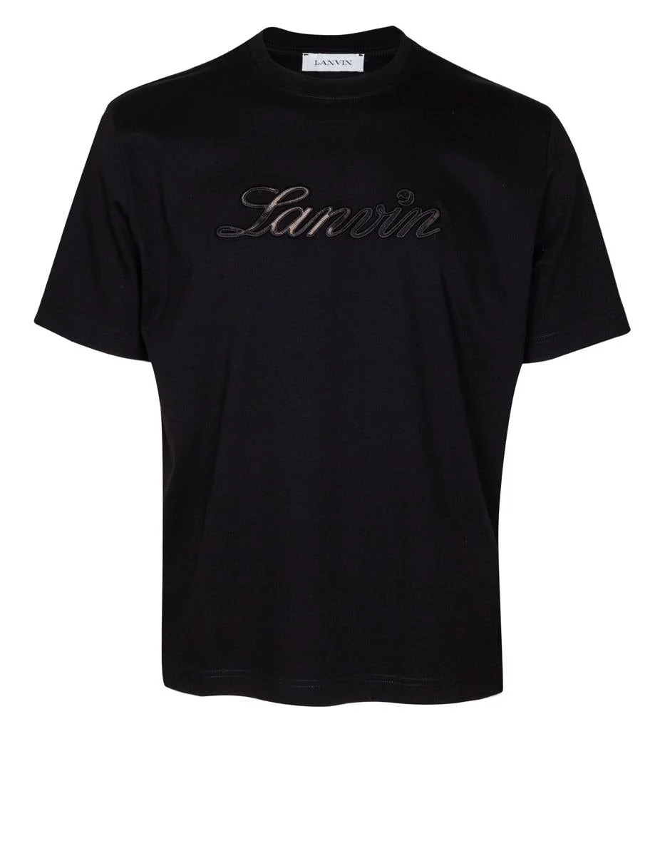 Cotton denim T-shirt with logo Color: Black Straight fit Round neck Short sleeves Embroidered Lanvin logo Gender: Men Material: 100% COTTON Color: Black Made in: PT Product ID: RM TS0115 J171 *Import tax/duty will be calculated at checkout (If applicable)