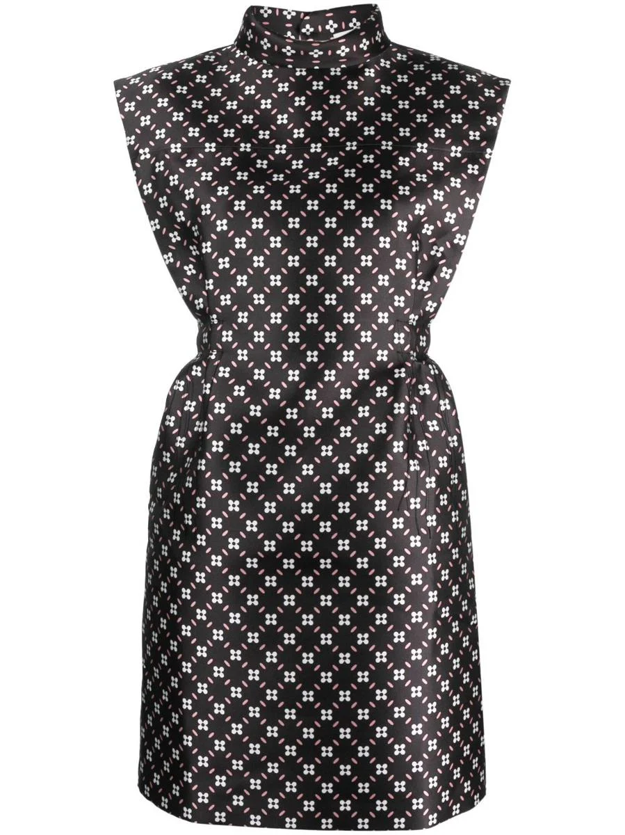 floral-print satin minidress from Lanvin featuring black, silk blend, satin finish, all-over floral print, high neck, shoulder pads, sleeveless, fitted waistline and above-knee length. Gender: Women Material: POLYESTER 76% SILK 24% Color: BLACK Made in: IT Product ID: RW DR0339 5683 E23 10 *Import tax/duty will be calculated at checkout (If applicable)