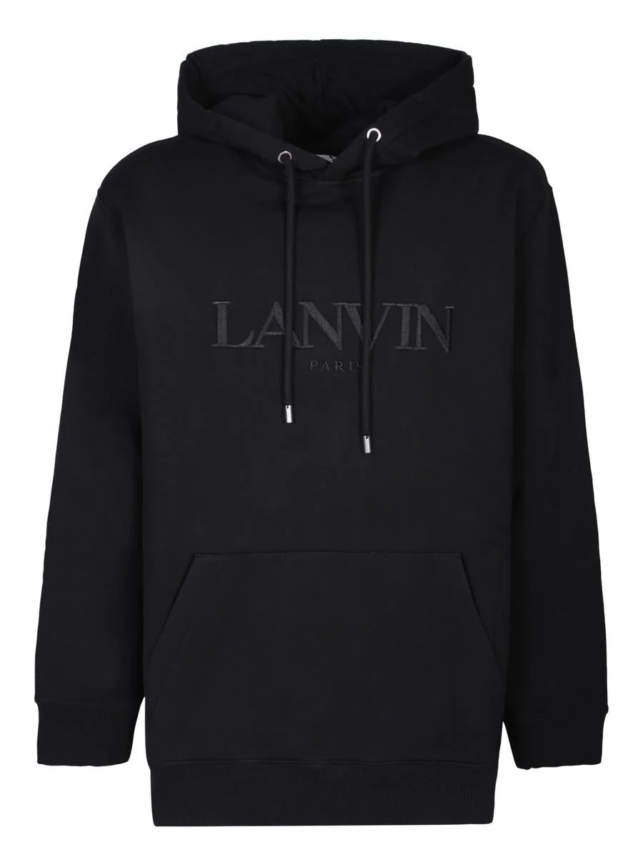 Cotton hoodie by Lanvin Drawstring hood. Long sleeves. Front pouch pocket. Logo to the front. Gender: MEN Material: 100% COTTON Color: BLACK Made in: Imported Product ID: RMHO0009 J210P24 10 *Import tax/duty will be calculated at checkout (If applicable)