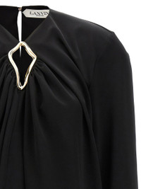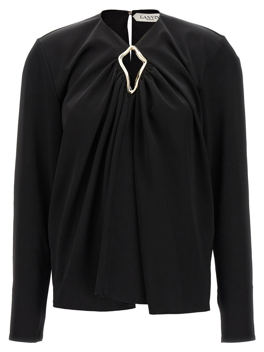 Satin blouse, neckline with metal detail, long sleeves, cuffs with buttons Gender: Women Material: 63% TRIACETATE 37% POLYESTER Color: BLACK Made in: ES Product ID: RWTO00045822H2310 *Import tax/duty will be calculated at checkout (If applicable)