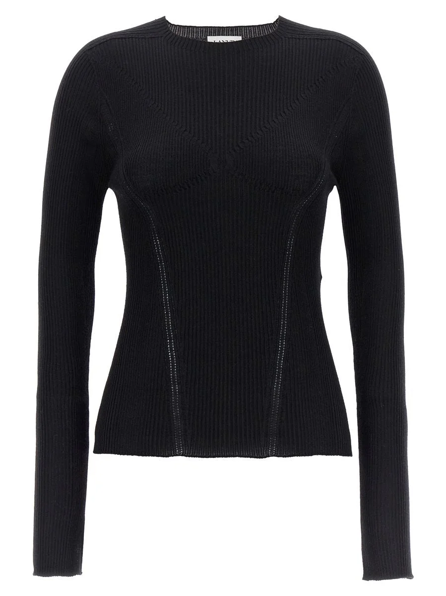 Ribbed crewneck sweater in cashmere blend with long sleeve Gender: Women Material: 35% CASHMERE, 35% SILK, 30% WOOL Color: Black Made in: Imported Product ID: RWPO0020K004A2310 *Import tax/duty will be calculated at checkout (If applicable)