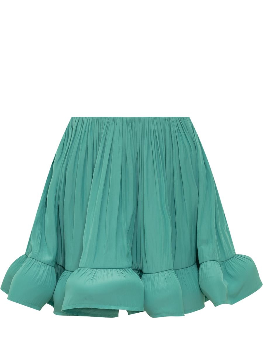 Miniskirt shorts. Zipper closure. Applied charmeuse ruffles. Gender: Women Material: 100% POLYESTER Color: GREEN Made in: FR Product ID: RWST00114778A23 461 *Import tax/duty will be calculated at checkout (If applicable)