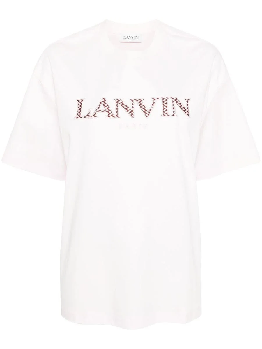 light pink/coffee brown cotton soft jersey logo patches to the front crew neck drop shoulder short sleeves straight hem Gender: Women Material: COTTON 100% Color: PINK Made in: IT Product ID: RW TS0022 J207 P24 502 *Import tax/duty will be calculated at checkout (If applicable)