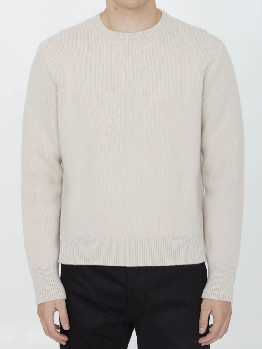 Long-sleeved crewneck sweater in cream-colored virgin wool and cashmere. Ribbed neck, cuffs and hem. Regular fit. The model is 188cm tall and wears size L. Size nationality: US Gender: Men Material: 70% VIRGIN WOOL, 30% CASHMERE Color: CREAM Made in: TR Product ID: 7128794 RM-PO0011-K400-A23 030 *Import tax/duty will be calculated at checkout (If applicable)